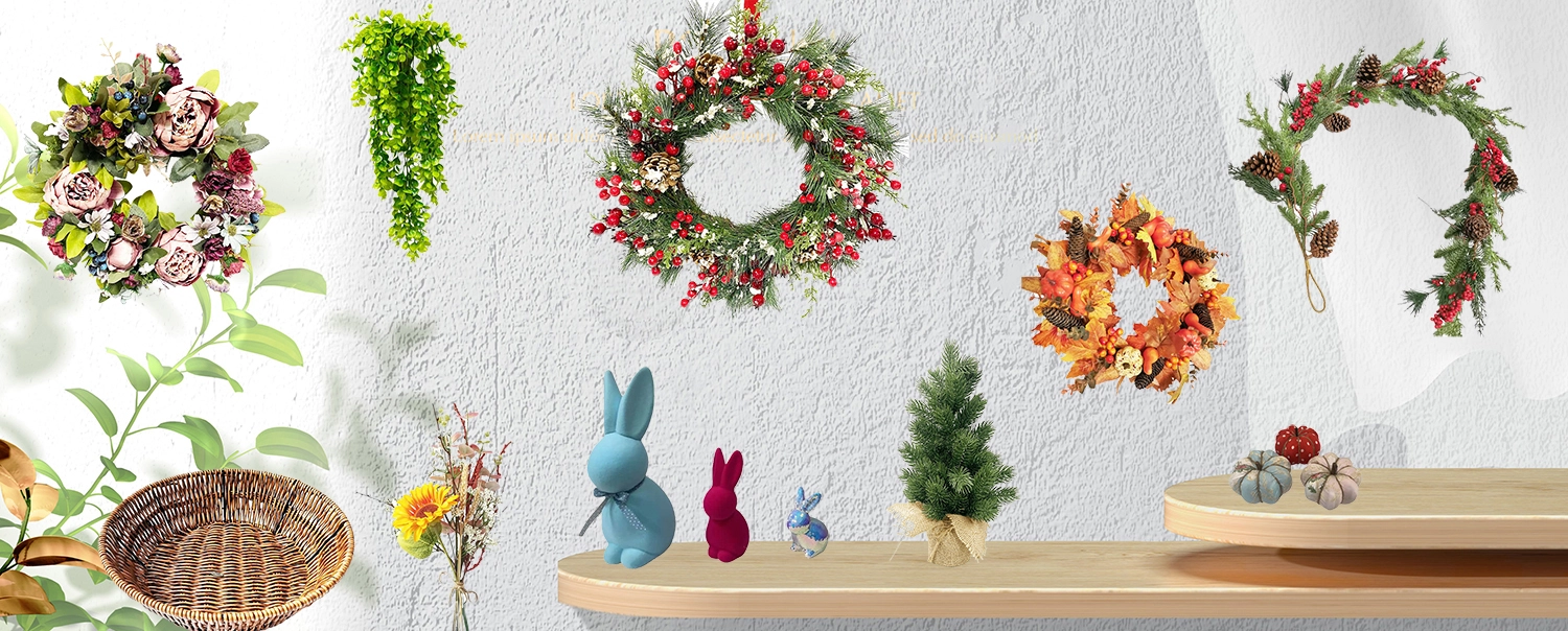 We located in Huizhou City,Guangdong Province ,China; We have 20 years of experience in handicraft design and production; Our main product is home decorative items ,such Christmas wreath, Easter egg, potted artificil plant,etc. Our production capability is 10x40'container per month; We hold BSCI and other international certifications.; We offer reliable OEM and ODM services. We have been successfully supplying our products to the clients across North America,Europe and Asia. We welcome your inquiry.