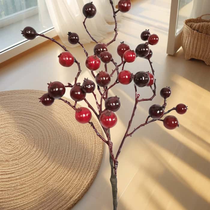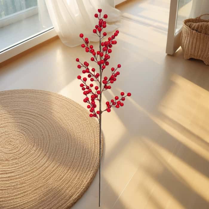 Clusters of ruby-red berries nestled among the glossy,deep green leaves of a holly branch,embodying the festive spirit of Christmas.