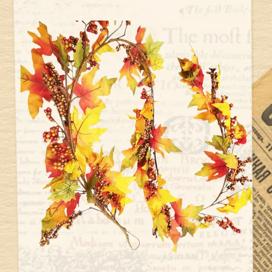 Autumn decorative garland with maple leaves and berries