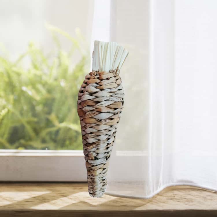 Braided Grass "Carrot" Chew Toys: A fun, whimsical toy that encourages play and healthy chewing. Its texture helps clean teeth and its simple, natural composition ensures it's a snack-safe toy.